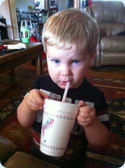 One day last week, Stephen and I went to pick up some half-price Cruizzers drinks before picking up Christopher from daycare. We decided to get him a Sierra Mist as a special “treat.” He has normally drinks water, milk, or apple juice (which I even water down to half water/half juice.) One time this summer when we went to Branson, we let him have Sprite for the first time and of course he loved it, but he has only had it that one time. He was SO excited that he had a special drink and sucked in down in pretty much no time flat. ha! After each big gulp he would go, “AAAHHhhhhhhh.” It was too cute!